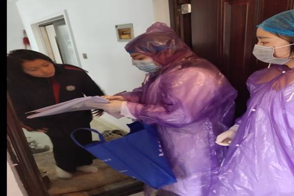除了每日八小时的执勤站岗,其余时间她主动去社区领取相关资料和预防海报,挨家挨户地去宣传“少出门,勤洗手,常通风”的防疫知识,并且还在各个公告栏张贴公告文件与海报。对于年纪比较大的老人,她耐心地当面指导老人们如何正确佩戴口罩。