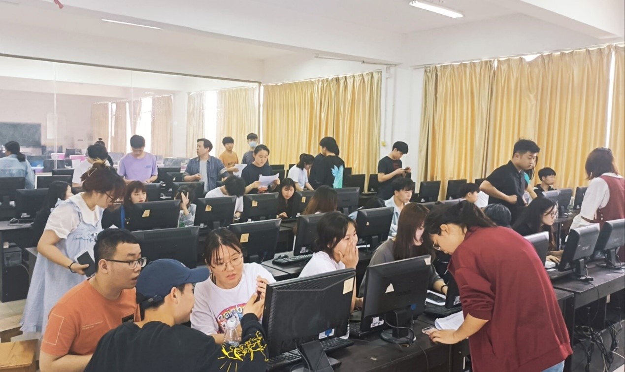 疫苗接种前志愿者们为接种新冠疫苗的老师、同学录入个人信息,此次信息录入工作量巨大,全校师生共七千五百余人参与此次接种,信息录入工作长达十个小时。