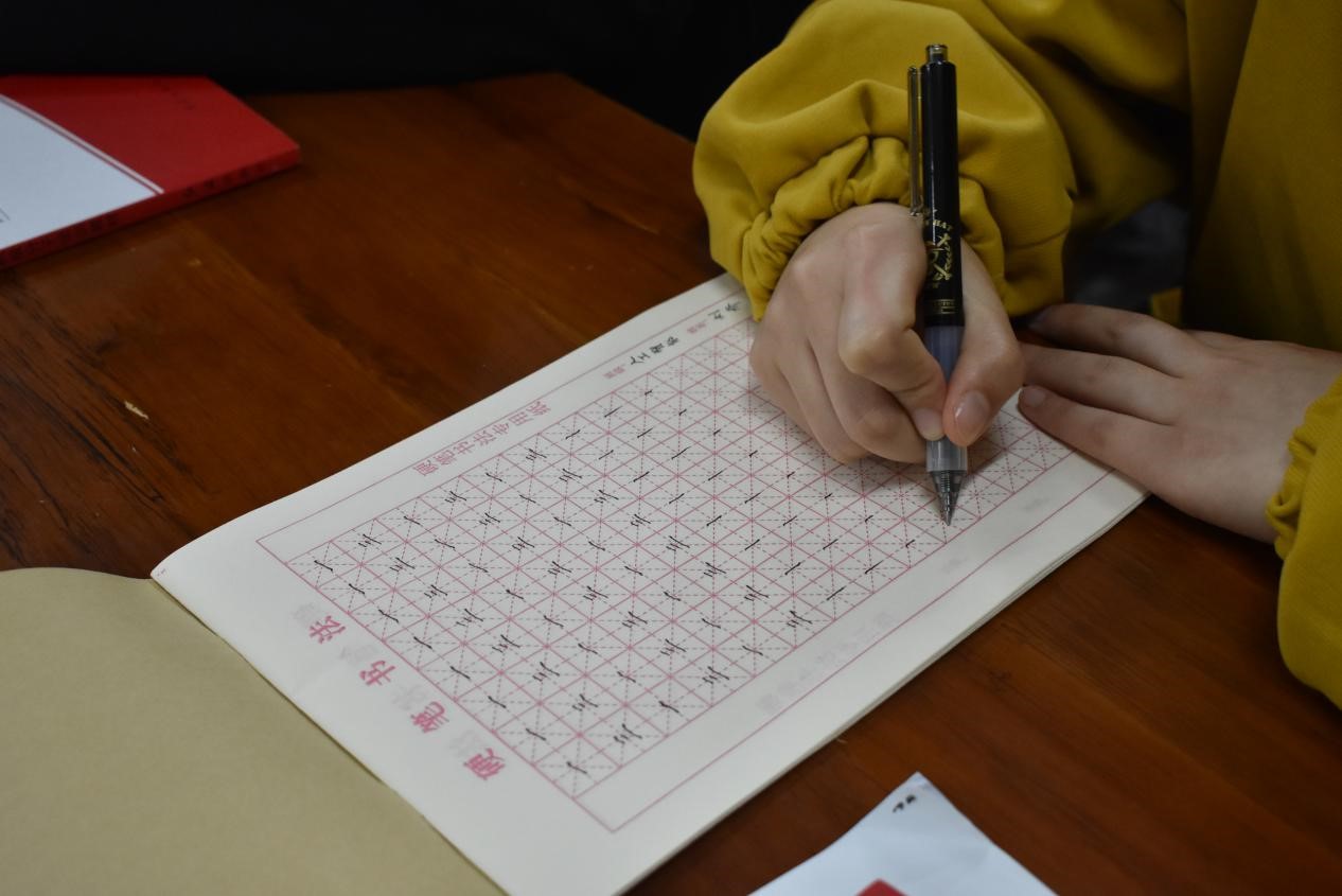 仪式开始前,方志远同学带领全体学员练习硬笔书法,一笔一划写好每一个字,是学员对党态度端正最直观的体现。