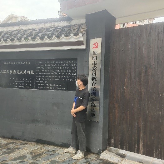 陈强同志家乡位于湖南邵阳,他利用暑期时间来到了八路军驻湘通讯处旧进行参观学习,他详细了解了八路军驻湘通讯处的辉煌历史,该处用于宣传中国共产党的抗战方针,开展统一战线工作,同时,利用公开而合法的地位恢复与发展湖南党组织,共招收学员680人,培训人员2220人,营救人员65人,接待国内人士20000余人,国外人士20人,接收转运物资50000余件,为抗日救亡运动做了大量卓有成效的工作。陈强是信息学院团学分会的主席,入校来他一直都深入群众,广泛地开展群众工作,为学院的发展献计献策。他说到,珍惜今天幸福生活的同时,永远铭记革命先辈英勇革命精神,更好地为祖国的发展贡献力量。