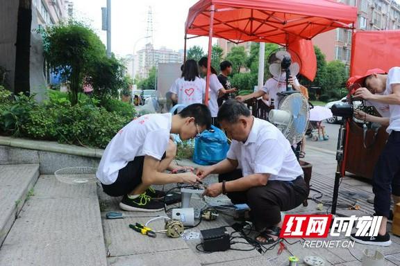 志愿者们就地维修居民们送来的家电