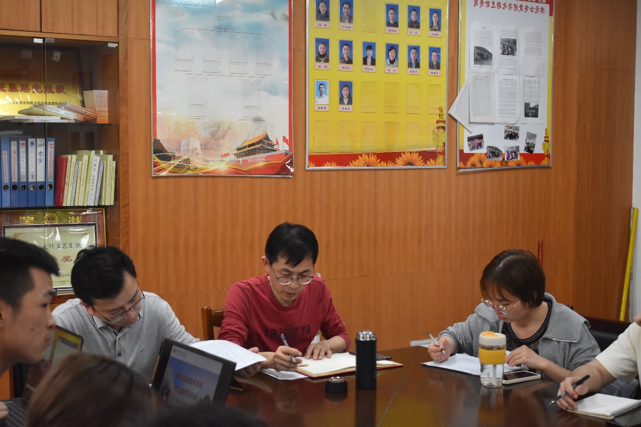 本网讯(学习部赵江秀)2021年5月25日下午16:00,商务信息技术学院在办公楼219开展了2021年上学期信息学院学习委员座谈会。本次座谈会的参会人员有党委委员、商务信息技术学院院长皮卫,商务信息技术学院副院长谢林勇,教学办唐思老师,以及学习部成员和2019级、2020级全体学习委员。座谈会由谢院长主持。