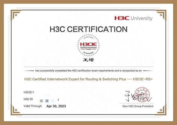 近日,我院计算机网络技术专业18计网2班王增同学努力学习,奋勇拼搏,顺利通过H3CIE考试,荣获H3C认证互联网专家证书(路由器交换方向)。成为湖南高职院校首位考取H3CIE的在校学生。