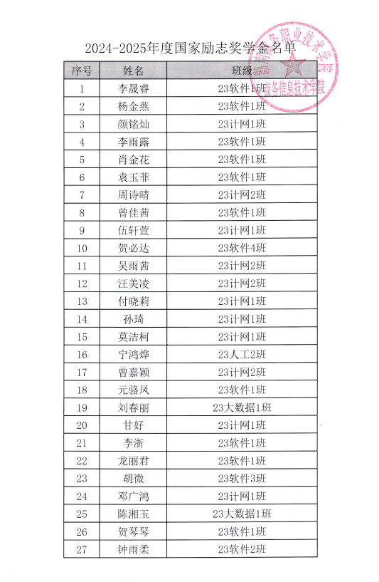 2024-2025年度国家励志奖学金 评审公示