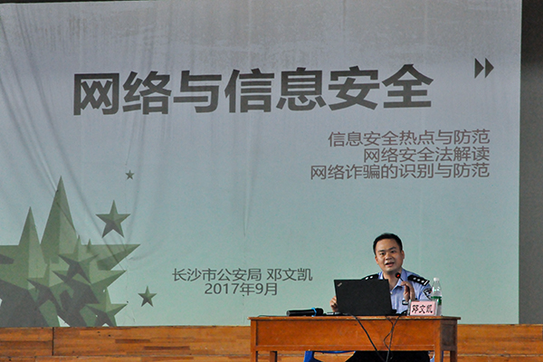 长沙市公安局网技支队网络管理科副科长、一级警司邓文凯现场讲座