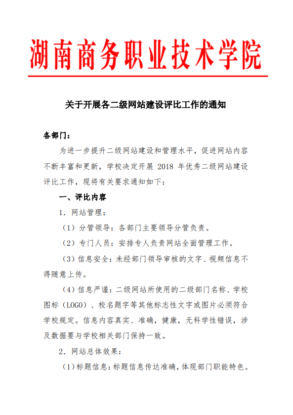 关于开展各二级网站建设评比工作的通知