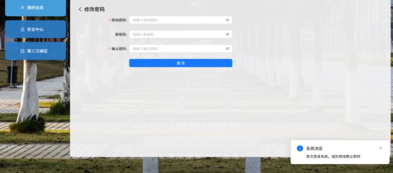 特别说明:首次登录需要修改密码,首次登录成功后会跳转到同一身份认证平台的修改密码页面。