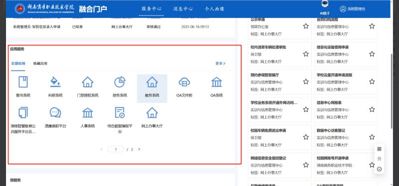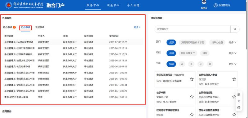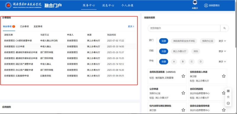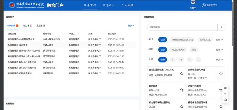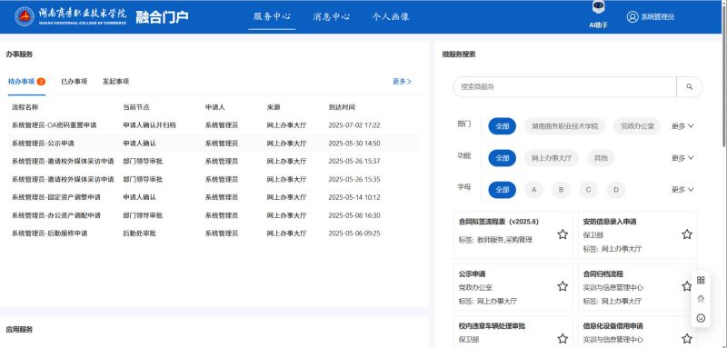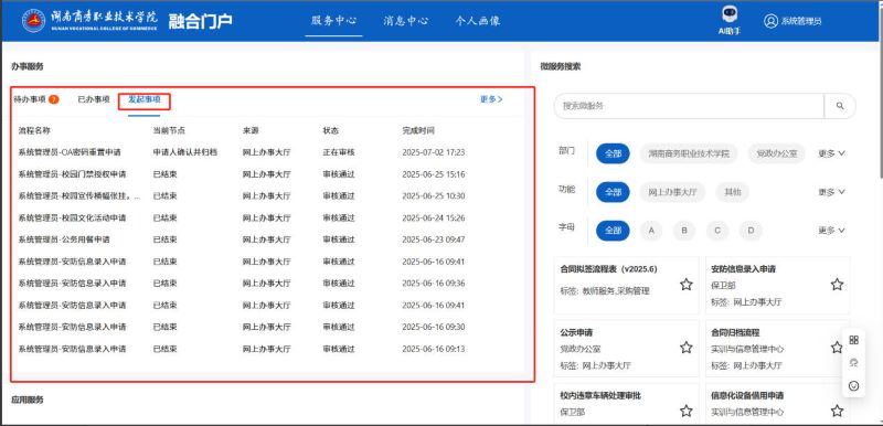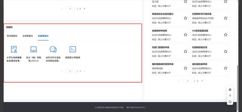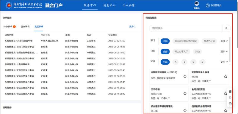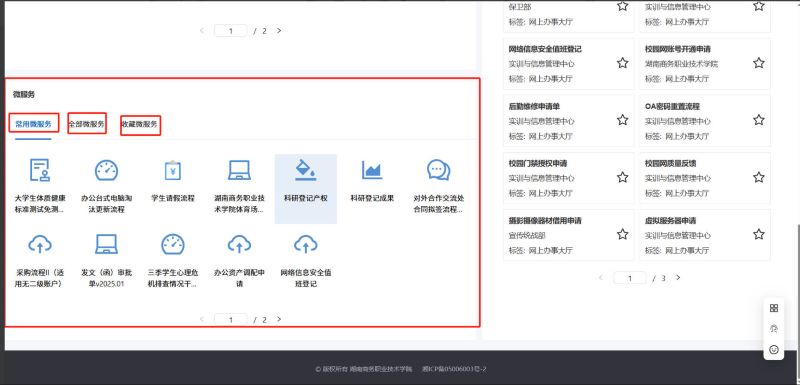 又分为常用微服务、全部微服务与收藏微服务是系统根据用户使用情况进行分类展示的,用户可以快速找到自己需要办理的服务。