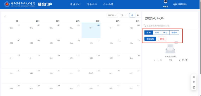 在“我的日程”模块中,用户可以查看日程信息,点击“更多”,可以查看日程的详细信息;点击“添加日程”,填写相关信息之后可以新增日程。