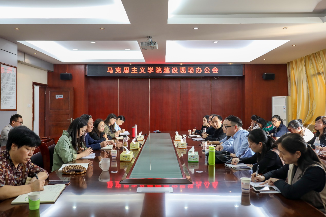 10月13日下午,学院党委书记周忠新深入马克思主义学院调研,并召开现场办公会,了解和解决思想政治理论课教学工作以及马院建设发展中存在的困难和问题,推进学院思想政治理论课教学改革和马克思主义学院建设。党委委员聂振华出席会议,党政办公室、组织人事处、教务处等相关部门负责人及马院全体教师参会。