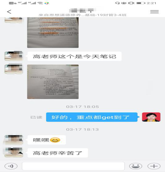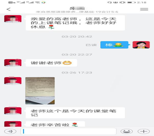 疫情阻隔了师生,阻隔不了屏蔽前的热情,教与学配合得非常默契。思政基础教研室的老师们将继续保持良好的状态,不断总结经验,用“有内涵”的课程、“有新意”的方式和“有温度”的关爱,落实思政课立德树人的根本任务。待到春暖花开,师生们再次欢聚在教室里共享知识的芬芳。