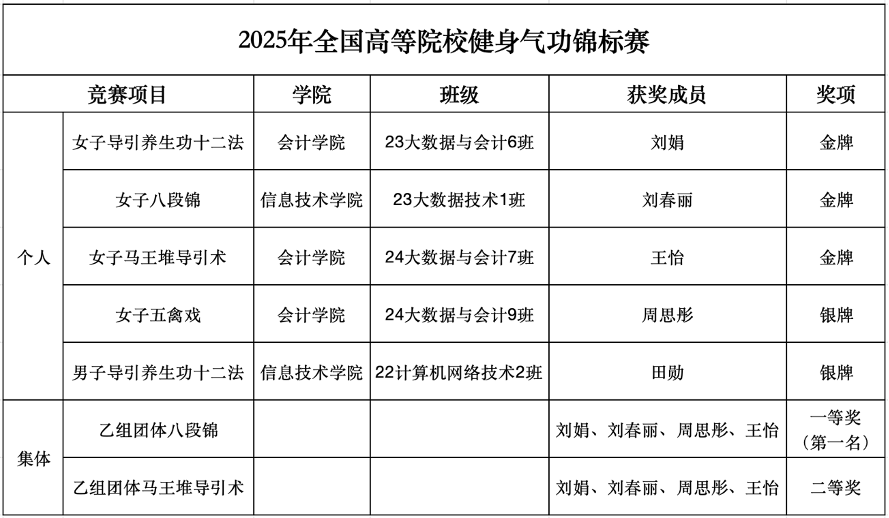 3金2银!湖南商务职院健身气功队再次突破