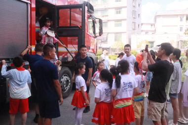 在消防装备科普环节,志愿者化身“安全讲解员”,围绕云梯消防车、抢险救援车等特种车辆,以及液压破拆工具组、正压式空气呼吸器等专业消防设备,通过生动演示与通俗讲解,将复杂的装备功能与使用方法一一拆解,让晦涩的消防知识变得通俗易懂。在技能展示区,消防员带来高空速降、结绳攀爬等精彩实战演练,志愿者同步为同学们剖析动作中的安全要点,现场不时爆发出惊叹与掌声,浓厚的学习氛围萦绕全场