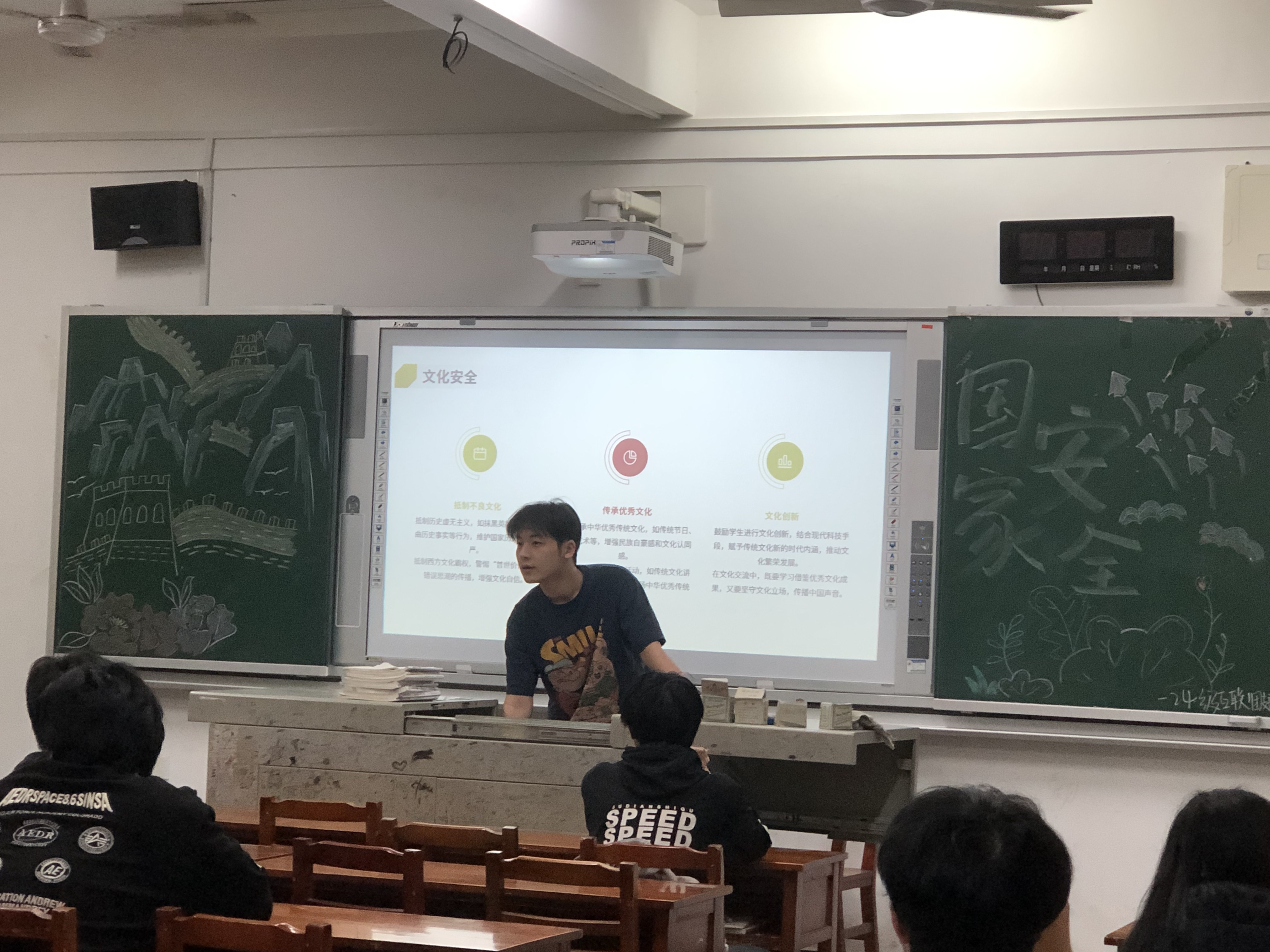 除了网络安全,团支书们还聚焦文化安全知识的普及。他们结合当下多元文化交织的现象,深入浅出地阐述抵制不良文化和历史虚无主义的重要性。中华优秀传统文化源远流长、博大精深,传统节日便是其中的璀璨明珠,承载着丰富的文化内涵和深厚的历史底蕴。在文化交流日益频繁的今天,同学们要坚定文化自信,积极传承和弘扬优秀传统文化,同时在吸收外来优秀文化成果时,坚守中华文化立场,传播中国声音,展现中国文化的独特魅力。