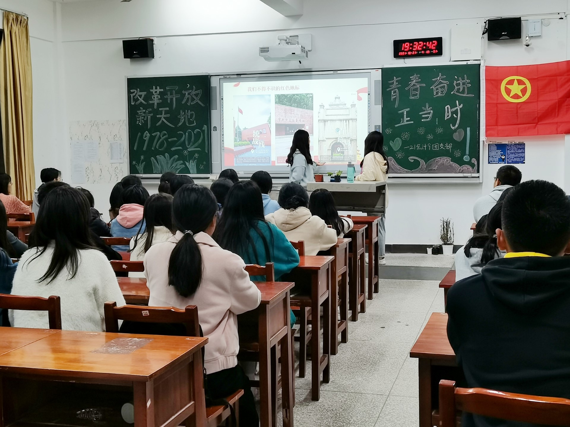 本网讯(通讯员:高浩宇)2021年10月21日19:00,在二教203开展以“改革开放新天地,青春奋进正当时”为主题的团日活动,每一位同学都在积极参与团日活动,突显了他们热爱共青团,热爱共产党的高涨情绪。