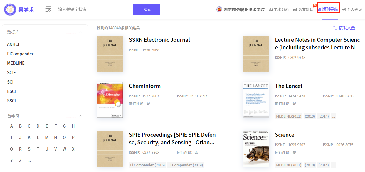 EA学术资源库(易学术)涵盖了13万种外文期刊、1.6亿条外文文献数据、26亿条引文数据,提供6300万篇全文下载。全面覆盖科技、医学、农业、交通、航空航天、社会科学、艺术与人文科学等全球研究成果。资源库使用大数据分析和人工智能(AI)技术,将散落于互联网中的外文文献信息进行汇聚整合,并对海量文献数据进行深度挖掘、精准提炼、关联分析和精细加工后形成了高质量外文文献数据库和自有引文网络数据库。该数据库利用人工智能分析引擎对高引用文章和经典文献进行文献总结,从而更好地辅助读者对学术文献的理解和利用,极大提升科研效率。