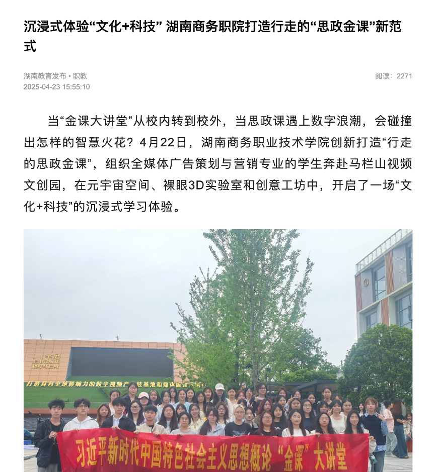 湖南教育发布报道——沉浸式体验“文化+科技” 湖南商务职院打造行走的“思政金课”新范式