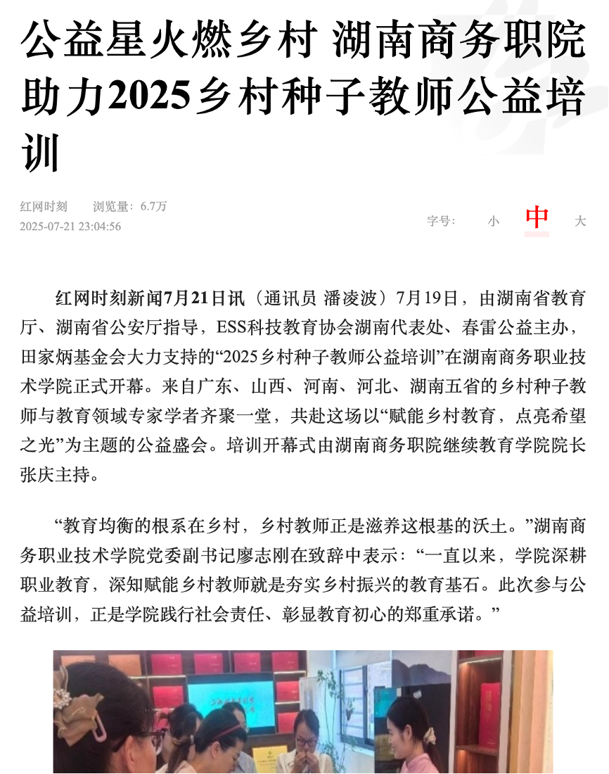 红网报道——公益星火燃乡村 湖南商务职院助力2025乡村种子教师公益培训