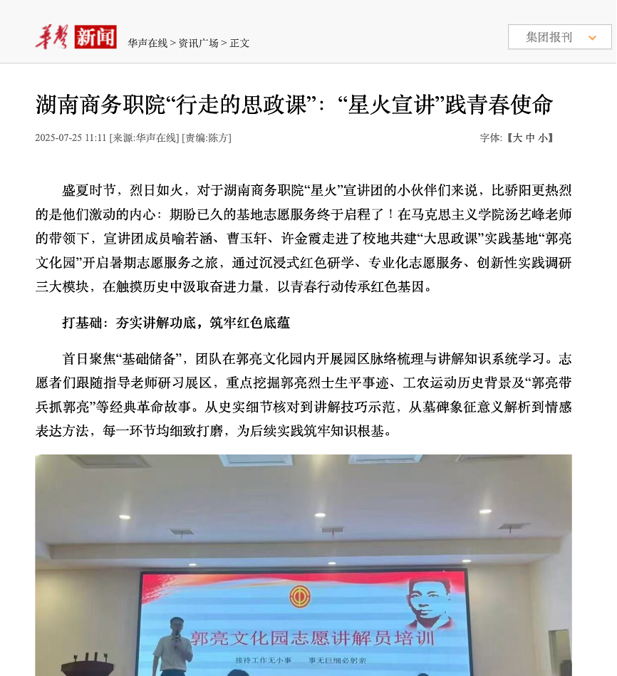 华声在线报道——湖南商务职院“行走的思政课”:“星火宣讲”践青春使命