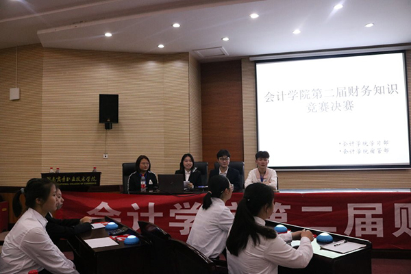 为丰富校园文化生活,营造良好的学习气氛,加强学生对相关专业知识的学习,2019年4月22日晚上7:00,由会计学院团学分会主办,会计学院学习部、宿管部承办的“财务知识竞赛”决赛于在我院办公楼一楼学术报告厅隆重举行。此次竞赛邀请了黄艳老师担当评委。
