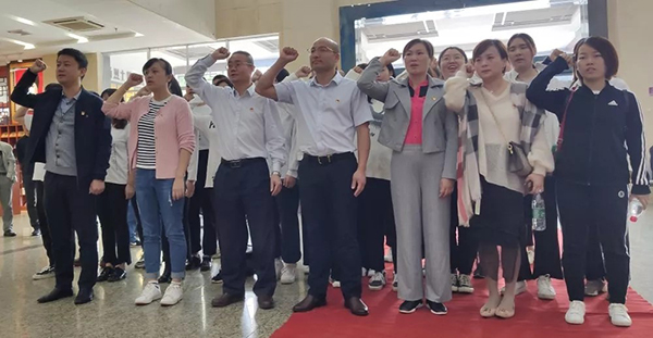 首先,全体党员同志在杨开慧烈士雕像前,重温入党誓词,庄严的誓词、洪亮的声音彰显着共产党员的革命精神!随后黄铖副书记为杨开慧同志献花致敬女英雄。