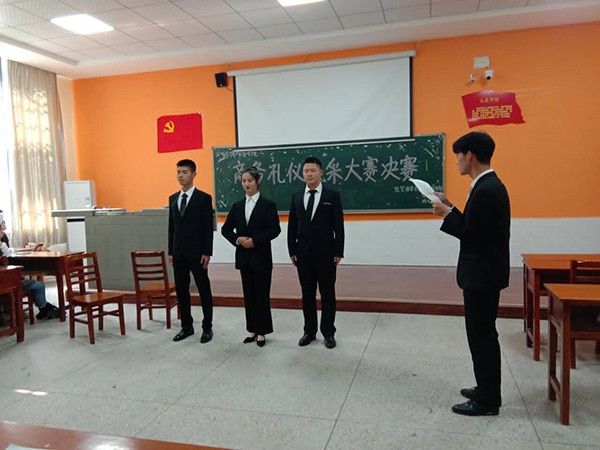 本次礼仪大赛共有15个队伍,48人参加。比赛过程中,19商管三班的“4321”组合带来的表演向观众们展示了完备的餐桌礼仪文化,赢得现场阵阵掌声。同时,19茶艺二班“向日葵”组合也毫不逊色,他们带来的是商务会议礼仪情景剧表演,情景剧分为三个情节来讲述商务礼仪内容,生动形象的表演将现场气氛推向高潮。来自19市场营销5班的青柠湘粤队则向大家具体展示了商务礼仪的坐车礼仪,坐车是生活中极其常见的事情,通过青柠湘粤队的表演展现出了精深的坐车文化,使在场观众受益匪浅。大赛的最后一个节目是由来自19商管三班“群魔乱舞”组合带来的传统礼仪文化表演,她们身着汉服传达出了传统礼仪文化的魅力,让观众们身受中国传统礼仪文化的感染。各个组合表演完毕后,所有人以最标准的礼仪步伐围绕评委走了两圈,走秀的完成也标志这此次决赛的完美落幕。