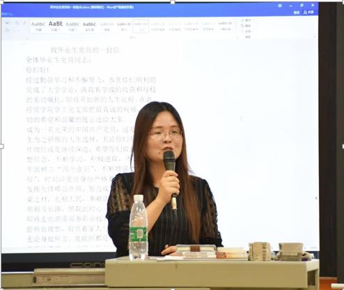 会议伊始,全体18级预备党员同志为毕业生党员同志寄送了致毕业生党员的一封信,对即将各奔前程的党员同志送上了诚挚的祝福。
