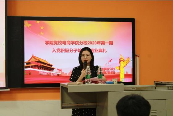 本网讯(记者 陈佳凤)7月1日中午,电商学院在第二教学楼110室隆重举行2020年第一期入党积极分子培训班结业典礼。在为期半个月的培训里,学员们接受了党的基本理论知识、习近平总书记的重要讲话精神、大学生党员的基本素质等方面内容的系统培训,并于6月26日完成了结业考试。