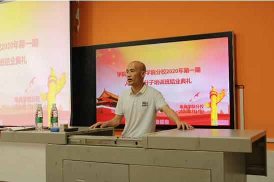 结业典礼上,学工党支部书记黄冰凤对此次入党积极分子培训班的上课情况进行了分析总结,对学员的学习态度、学习成效予以了充分肯定。她指出,培训班虽然已经结束,但这只是个人政治理想追求的一个开始,大学生需要树立正确的个人价值观和政治追求,愿每位学员在今后的生活和工作中,时刻以党员的标准来严格要求自己,争取早日成为一名真正的共产党员。