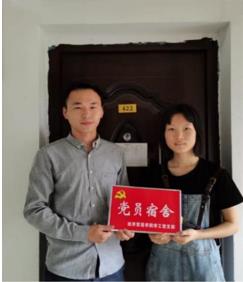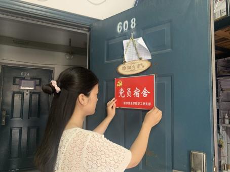 经贸学院党小组组长孔霞同志为党员宿舍挂牌