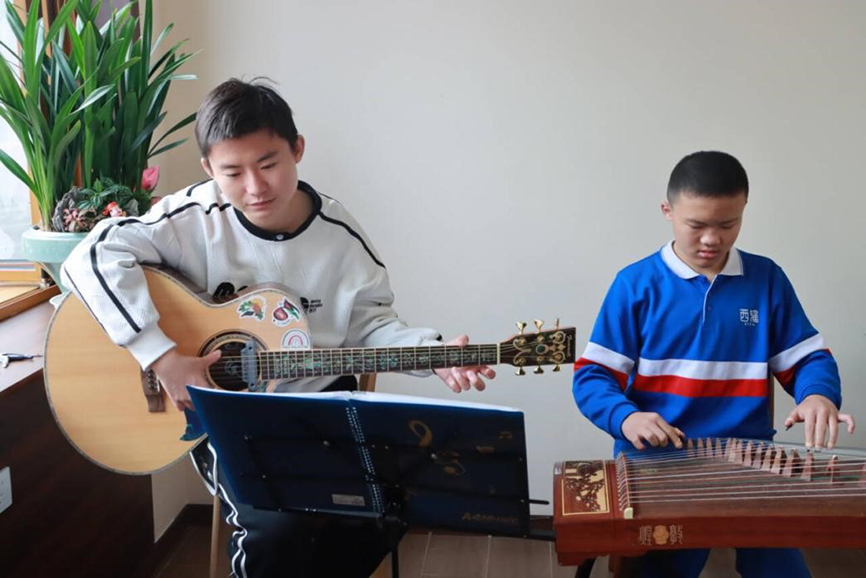 这里的面包是残疾人朋友们用双手绘制出的甜蜜,孤独症儿童们用吉他、古筝等乐器为客人们弹奏着美妙的乐曲。,这琴声恰似孤独症儿童们发出的星语,两者交织在一起,构成了一幅充满爱与温暖的画卷。越来越多的市民走进图书馆、来到面包店,翻阅图书、品尝面包,感受着这份独特的温暖。