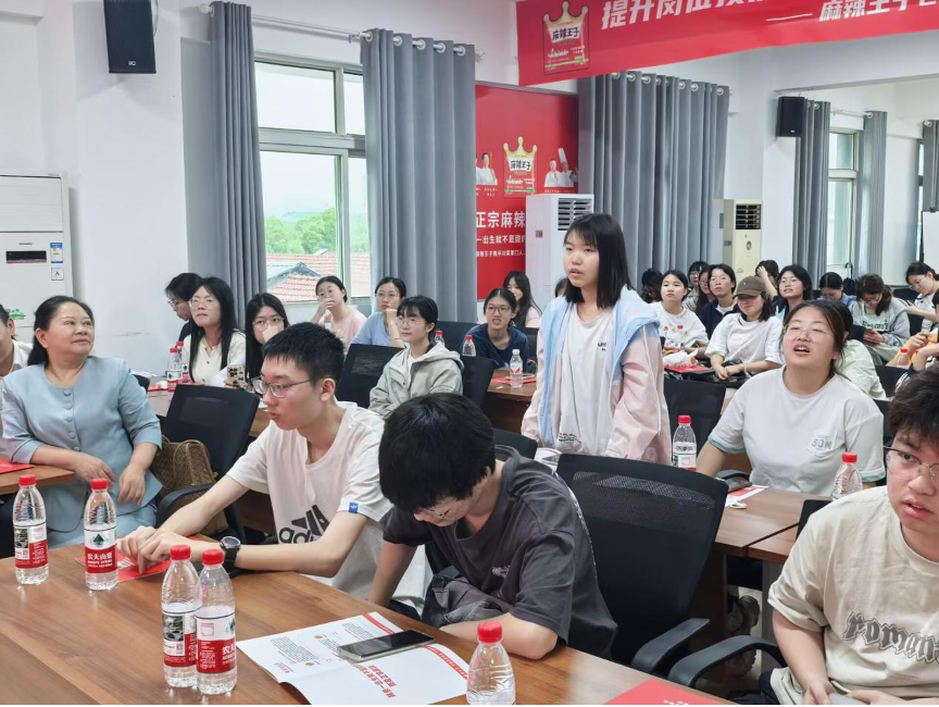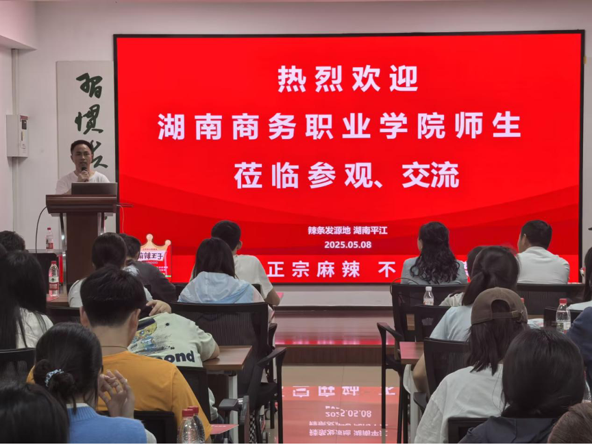 随后,公司副总经理李满良亲自为同学们带来精彩分享。李总结合自身丰富的经验,详细讲述了公司从创立之初的艰辛探索,到如今在辣条市场卓越成就的发展历程;深入剖析了公司核心业务,强调了产品品质把控与创新研发的重要性;分享了公司如何聚焦“麻辣味辣条”这一单一市场做精做强做大,如何通过打造 “0添加”健康辣条概念,精准定位消费群体,成功引领市场潮流等市场营销策略及创新实践。同学们聚精会神,不时记录要点,积极思考其中蕴含的营销智慧。