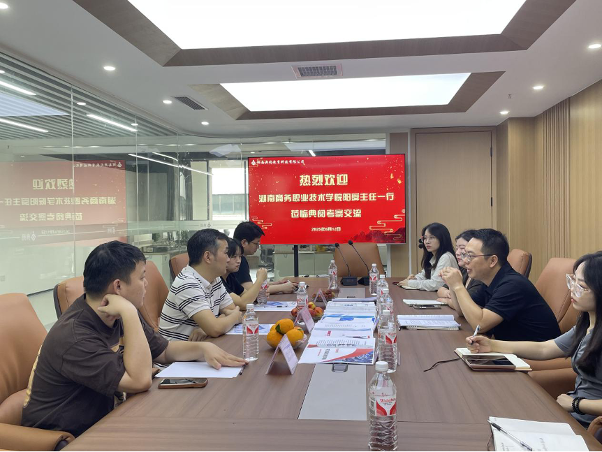 商务信息技术学院人工智能教研室阳舜主任率团队于2025年6月12日赴湖南典阅教育科技有限公司进行合作交流,与何俊峰博士、刘依婷经理就人工智能产教融合展开深度探讨。双方以"中国国际大学生创新大赛(2025)产业赛道"为切入点,围绕大赛命题、人才培养、技术应用等议题,共同探索校企协同育人新范式。