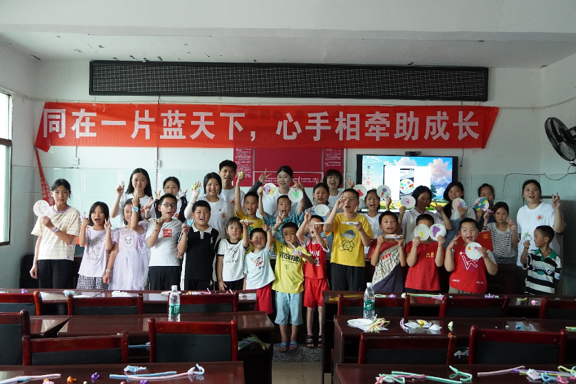会后,志愿队开展了关爱留守儿童活动。同学们精心设计了趣味游戏和手工制作环节。社区孩子们用粘土、扭扭棒塑造出可爱的小物件,在纸盘上描绘五彩斑斓的梦想。活动现场欢声笑语不断,他们纯真的笑容让志愿者倍感温暖。