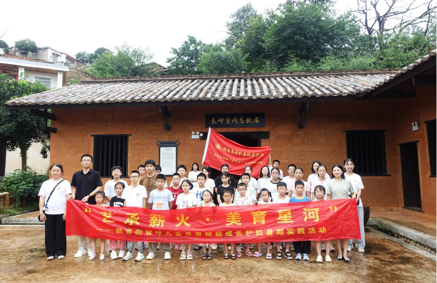 盛夏七月,骄阳似火。在长沙市望城区铜官老街的青砖灰瓦间,一群青年志愿者与当地留守儿童一道开展“艺承薪火·美育星河”——“三下乡”社会实践活动,先后走进中共湖南省委旧址、袁仲贤故居等红色文化教育基地,在实地探访中浸润红色基因,让红色血脉代代相传。