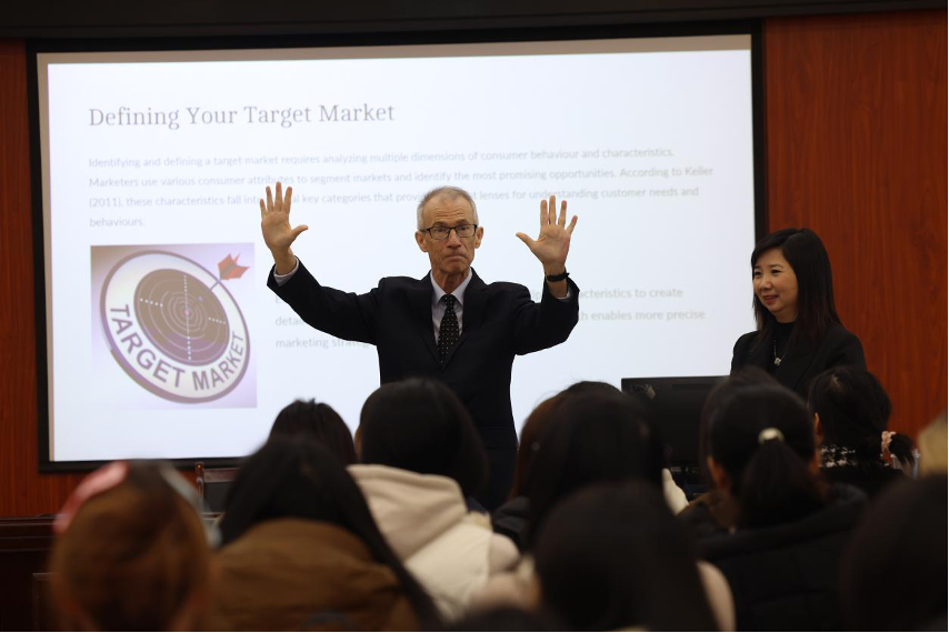 上午,Alan McNeilly 先生为我校市场营销专业学生带来 “营销策略基础” 专题讲座,作为当日系列交流活动的重要开篇。他结合丰富的国际企业实践案例,系统讲解市场营销核心理论与实操要点,通过互动提问引导学生主动思考,现场学术氛围浓厚、互动热烈,获得师生广泛好评,为后续深度交流奠定了良好基础。