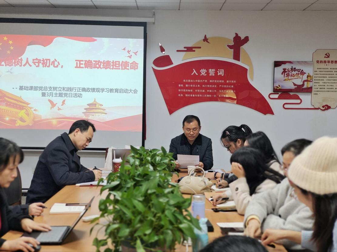 为深入学习贯彻习近平总书记关于树立和践行正确政绩观的重要论述,全面落实学校党委工作部署,3月17日,基础课部党总支在崇德楼215会议室召开树立和践行正确政绩观学习教育启动大会。党总支书记易东主持会议并作动员部署,全体党员参会。