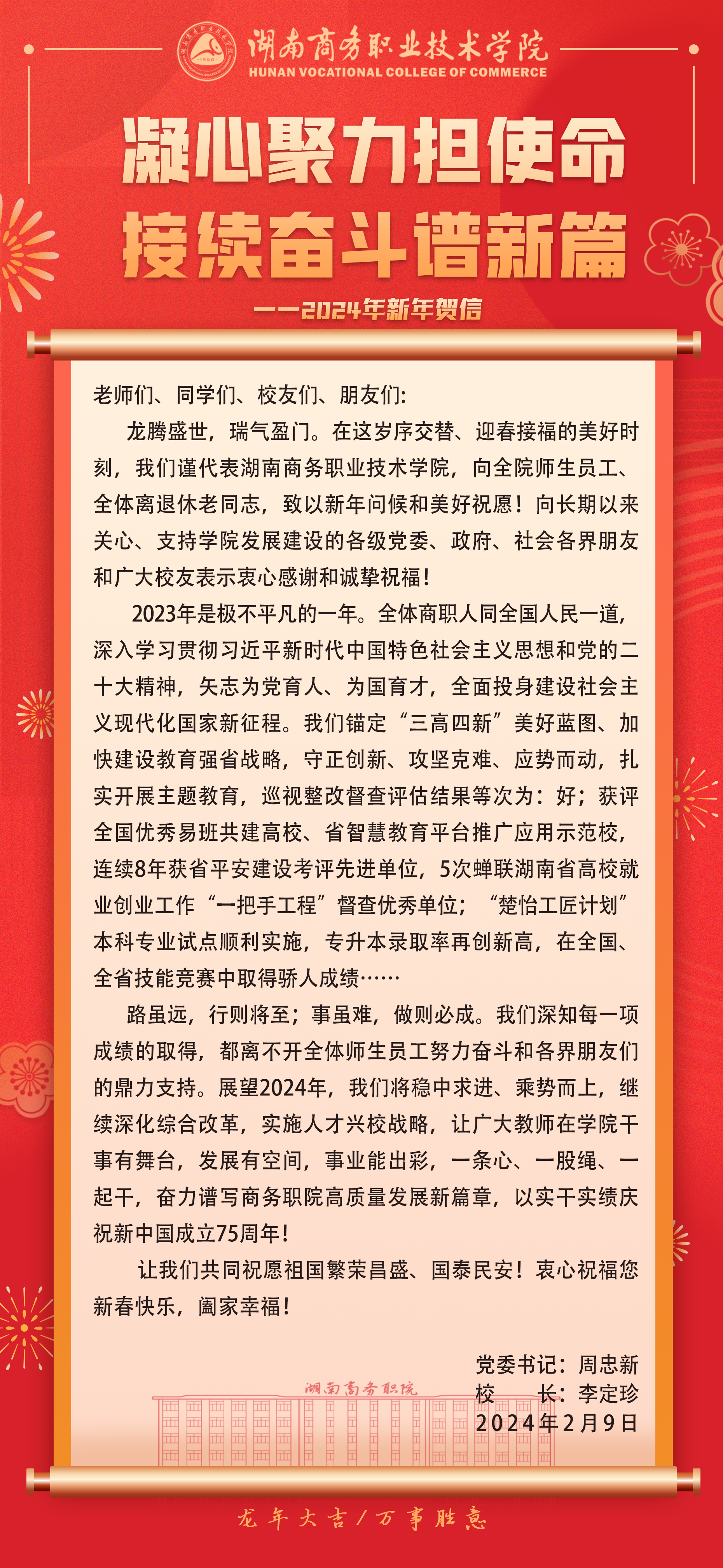 凝心聚力担使命 接续奋斗谱新篇——2024年新年贺信