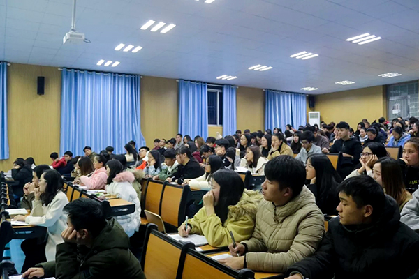 12月28日的报告会上,人文旅游学院毛艳老师与经贸学院辅导员白丹妮老师对十九大精神进行了宣讲。毛艳老师主要以“中国特色社会主义是天下大道”为主题,从中国外交的大道之行、中国治理的大道之行、中国学生的学习之道三个方面进行了深入浅出的解读。她指出:“哪有什么岁月静好,只不过是有人为你负重前行。”随后,白丹妮老师以“实现中国梦 青年勇担当”为主题,阐释了大学生应该怎样“教育梦”助力“中国梦”、“个人梦”融入“教育梦”、“个人梦”依托“报国梦”。白丹妮老师表示,大学生一定要牢记习近平主席的讲话,面向未来,面对挑战,不忘初心、继续前进,努力为中国梦的实现添砖加瓦。