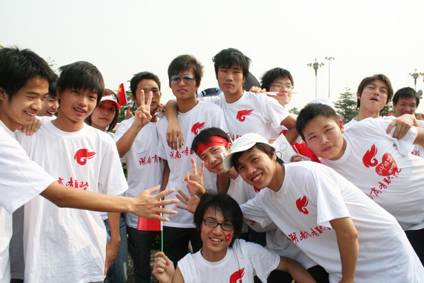 奥运圣火长沙传递 商务学子激情助威