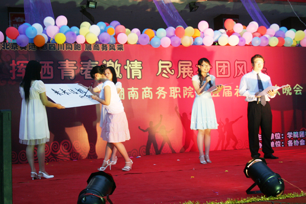 晚会以“挥洒青春激情 尽展社团风采”为主题,以“迎北京奥运,慰四川同胞,展商务风采”为主旋律,内容缤纷多彩:有动感的健美操、优美的交谊舞、火爆的街舞、赏心悦目的民族舞、感人的话剧、轻松愉悦的心理互动及慷慨激昂的诗朗诵等节目。此次演出由院团委、院团委社团部主办,学院三十多个学生社团共同协办。晚会充分体现了我院大学生的精神风貌,同时也表达了我院师生对祖国的热爱和对同胞的深情,晚会取得了圆满成功。