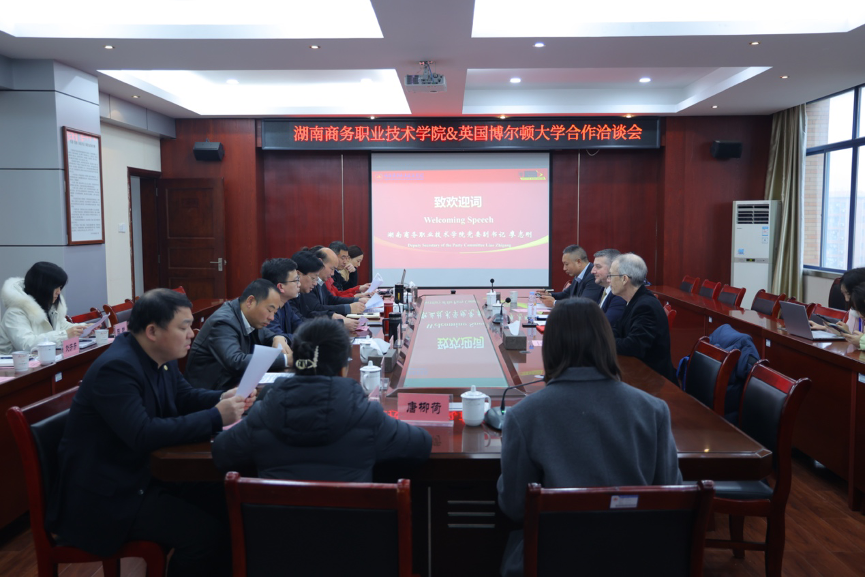学院党委副书记廖志刚出席洽谈会,对远道而来的博尔顿大学代表团表示热烈欢迎,并从办学历史、专业设置、人才培养、国际交流与合作等方面介绍了学院办学情况。廖志刚表示,希望以此次合作备忘录签署为契机,进一步深化务实合作,共同推进更高水平的对外合作办学,为服务湖南“三高四新”战略贡献教育智慧。