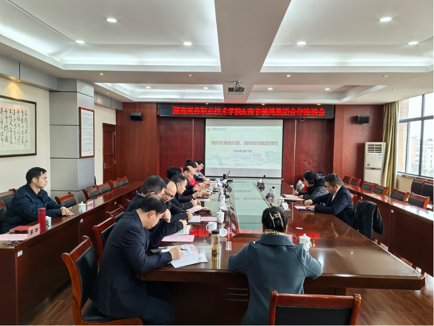 3月10日,南非骏鸿集团董事长吴波来到学院展开专场宣讲,旨在选拔10名优秀学子到位于约翰内斯堡市的骏鸿清关货运代理公司工作。双方围绕合作办学、职业技能培训等达成系列合作意向。湖南省妇女联合会副主席卢妹香陪同来访,院长李定珍出席洽谈会。