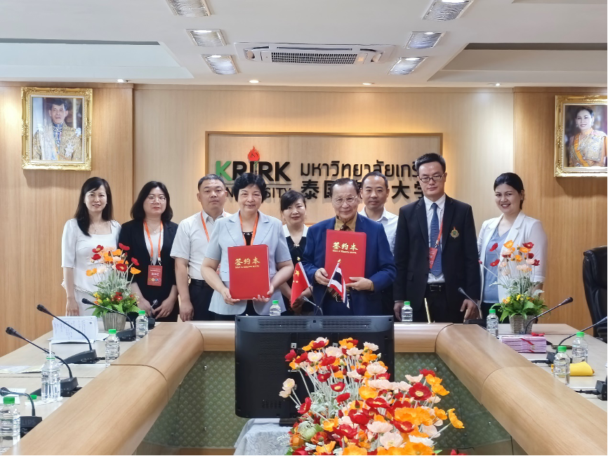 在柬埔寨波雷列国立农业大学和泰国格乐大学,代表团参访校区特色教学场地和实验实训设施,就茶艺与茶文化、食用菌种植与加工、商贸流通等国际化技术技能人才培养,以及专业教学标准与课程标准开发、学术交流合作、师资交流与互访、留学生交换交流与培养、学生学历提升等方面进行了真诚、深入的交流与洽谈,达成了“行-校-校-企”人才联合培养模式的共识,签署了“国际教育交流战略合作协议”。
