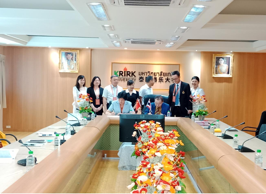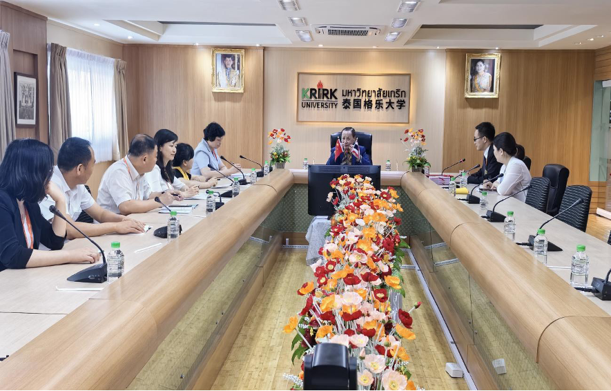 2024年4月29日,湖南商务职业技术学院院长李定珍率领出访团访问了泰国格乐大学,并与泰国格乐大学签署国际教育交流战略合作协议,两校之间就开展国际教育交流合作进行深入洽谈。