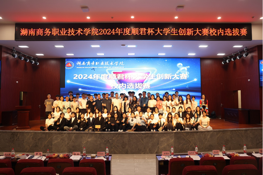 6月25日,2024年度顺君杯大学生创新大赛校内选拔赛在湖南商务职业技术学院崇理楼报告厅举行。学院党委委员、副院长禹明华出席大赛并致辞。