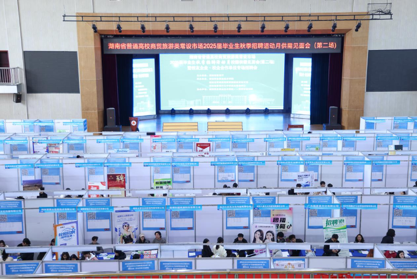 11月29日,2025届毕业生秋季招聘活动月校园供需见面会(第二场)暨校友企业·校企合作单位专场招聘会在湖南商务职业技术学院举行,吸引了210家企业进校招揽贤才,累计提供岗位超7000个。