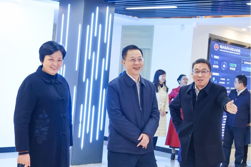 夏智伦一行在学院党委书记潘军、院长李定珍等院领导的陪同下,走进了学院数字校园展示中心、湖南省普通高校毕业生就业区域性行业性常设市场,通过基于大数据的学生、教师等群体画像分析,详细了解学院办学情况,智慧校园建设情况及招生就业情况、专业建设情况、教师队伍建设等情况。在智慧就业一站式实践体验中心,夏智伦实地感受了AI定制简历、AI全真面试模拟等一站式AI就业指导服务。随后,一行人还考察了拟建的食堂、宿舍项目选址。