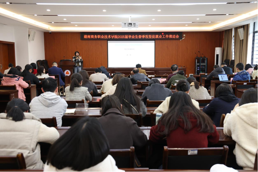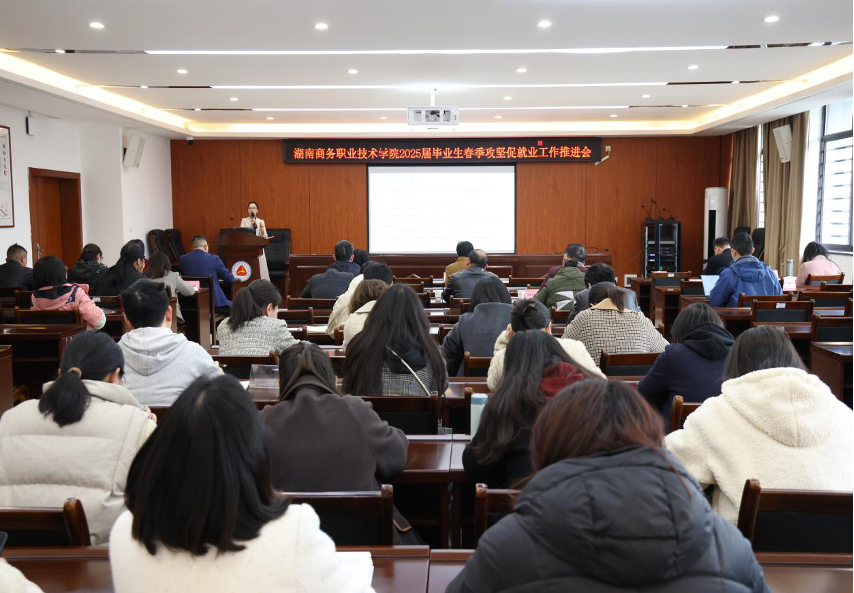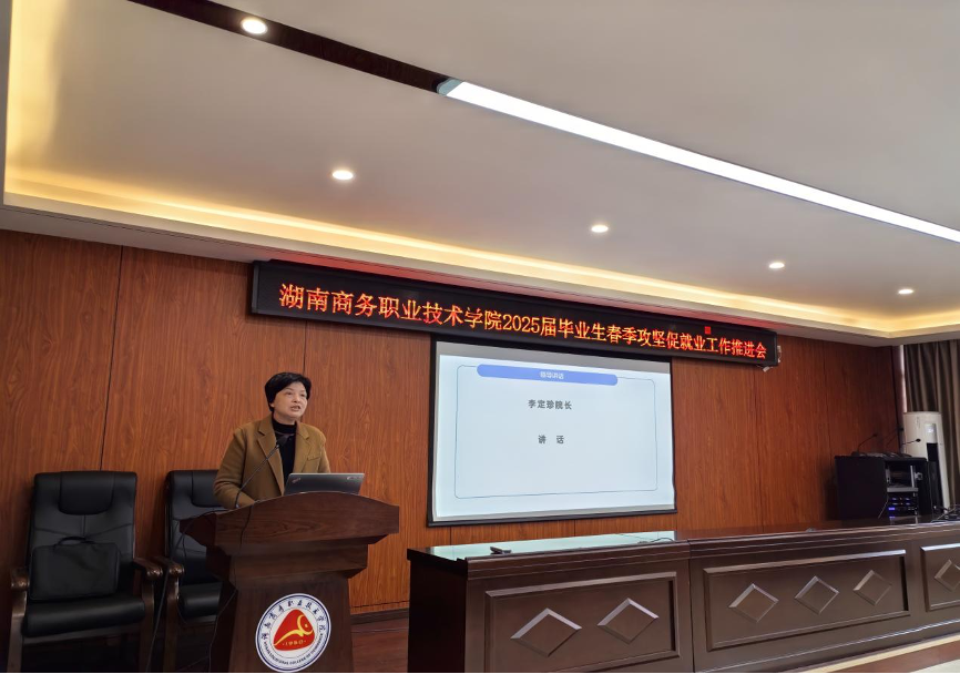 为认真贯彻落实教育部、省教育厅关于做好2025届高校毕业生就业工作的部署要求,抢抓春季促就业攻坚期,加力提速学院毕业生促就业工作进程,2025年3月17日下午,我院在崇理楼109召开了2025届毕业生春季攻坚促就业工作推进会。学院院长李定珍,副院长禹明华出席会议,各二学院院长、总支书记、就业干事、毕业班级辅导员及湖南外贸职业技术学院招生就业处处长杨剑一行3人参加了本次会议。会议由招生就业处处长刘芳芳主持。