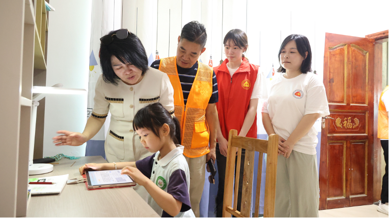 开班典礼结束后,调研组马不停蹄地深入隆回县司门前镇石湾村,实地考察新落成的5间“困境儿童梦想书屋”建设成效,以及“留守儿童关爱服务质量提升工程”推进情况。在石湾村,调研组走进一间间简陋的农舍,与受助学生及家长围坐在一起,亲切地拉家常、问冷暖,详细询问受助学生的学习进度、生活起居。当听到孩子们在学习中遇到的困难时,志愿者认真记录,一一给出建议和鼓励。禹明华强调:“关爱儿童是全社会义不容辞的共同责任。我们要加大对困境儿童的精准摸排力度,完善基础信息数据库,确保每一项帮扶措施都能精准落地,真正解决孩子们的实际问题。”她还特别指出,在建设好“困境儿童梦想书屋”,解决孩子们物质需求的基础上,更要关注他们的精神世界,通过丰富多样的活动和陪伴,驱散孩子们内心的孤独,解决精神之困。